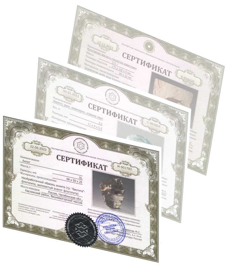 Экспертизу проводят специалисты Российской академии наук и Министерства культуры РФ — палеонтологи, геммологи, минералоги с опытом работы от 10 лет.